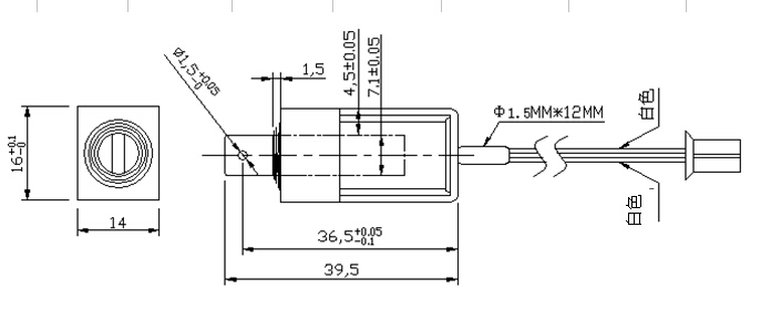 一:單保持電磁鐵KY0730 尺寸圖如下: 30*16*14