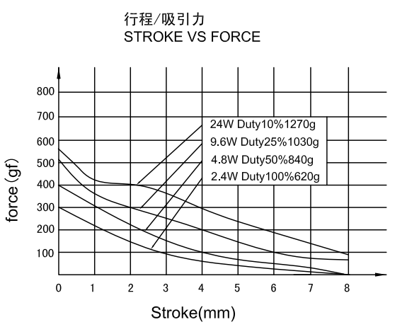 行程和力量:行程5MM時,力量可達到600克    具體情況根據客戶的使用而定