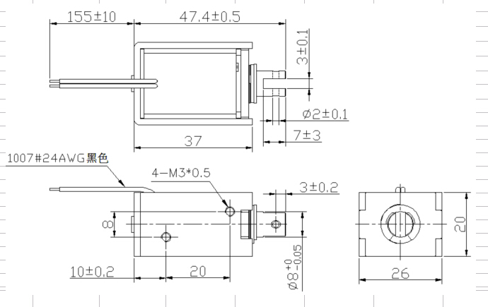 橫向:代表電磁鐵行程                 單位為毫米(mm